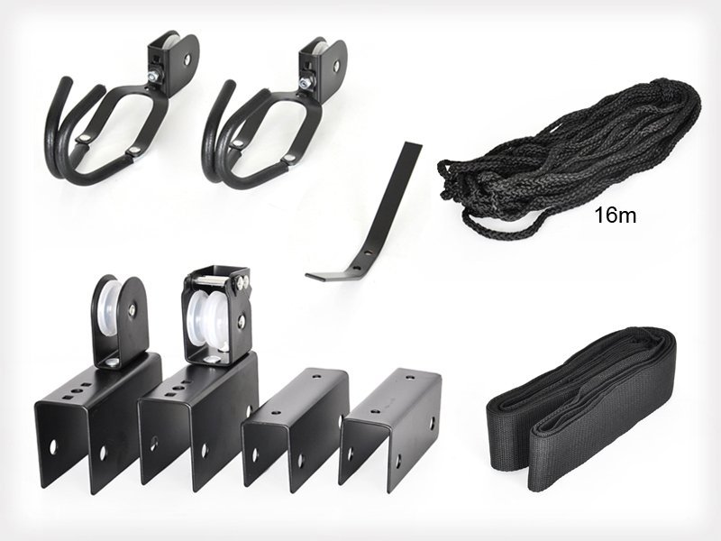Store your kayak overhead and out of the way with this sturdy hoist that features smooth pulleys and latches that make lifting easy. The rope locking mechanism prevents unwanted release and guarantees secure suspension. It fits most kayaks and can also be used for canoes, bikes and more up to 45kg.